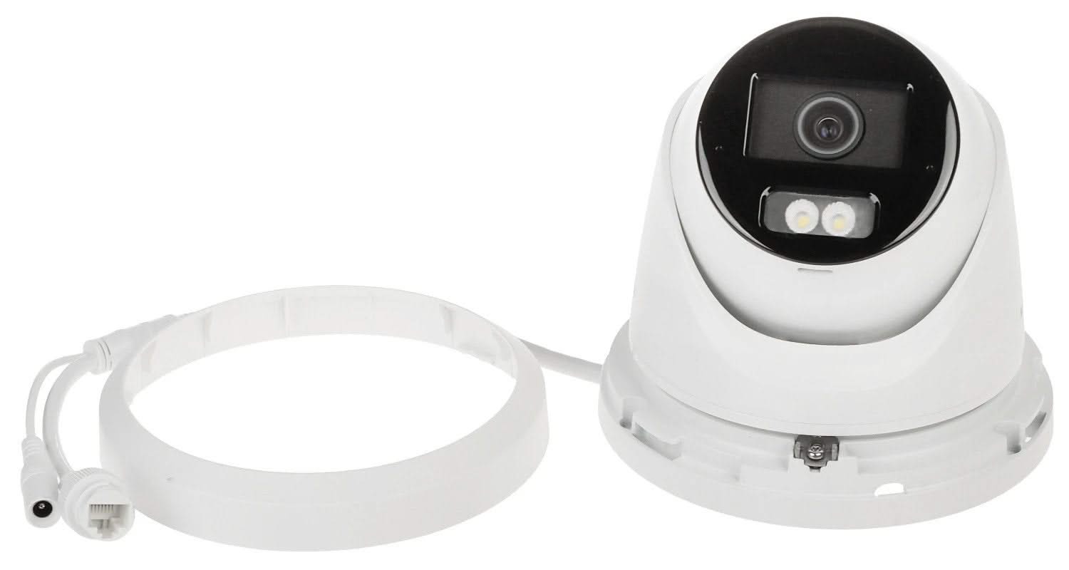 DS-2CD2343G2-LI2U is a 4Mp Turret camera from the Hikvision Smart Hybrid Light series, equipped with a fixed lens and two types of radiators: white light and infrared. Thanks to the advanced AcuSense technology, the camera effectively filters out false alarms, with an emphasis on the detection of people and vehicles. The device offers three night modes: black and white image using infrared (IR), color image thanks to visible light LEDs, and SMART mode, which automatically switches from IR to LED after detecting human or vehicle movements. This model therefore provides a color image at night when detected.