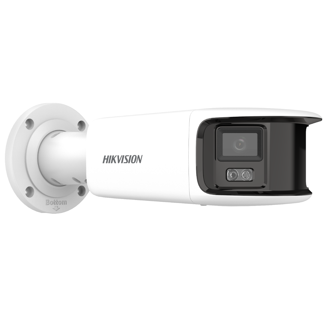 The panoramic camera from Hikvision has 2 2MP lenses that together provide a 2K 180 degree image without the sides giving a convex distorting image.
