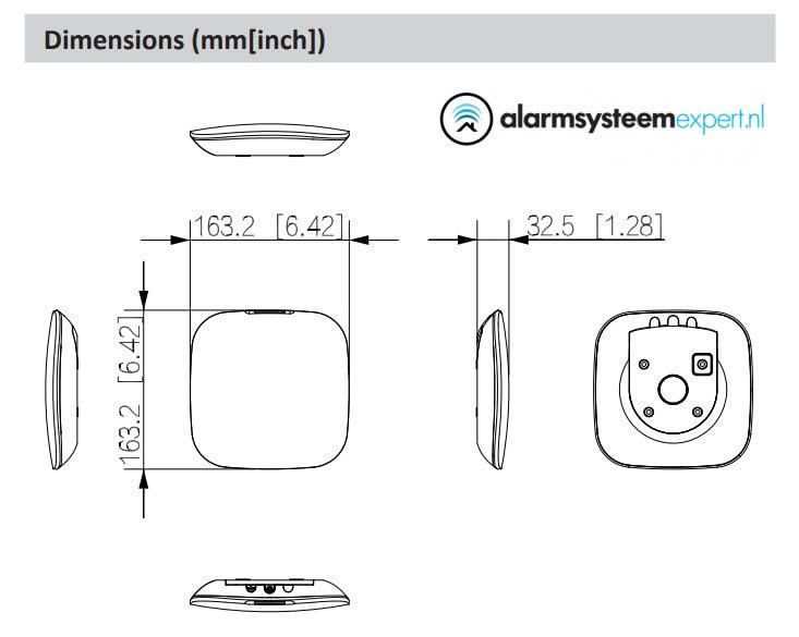 - Dimensions du produit - 163,0 mm × 163,0 mm × 32,0 mm (6,42" × 6,42" × 1,26")