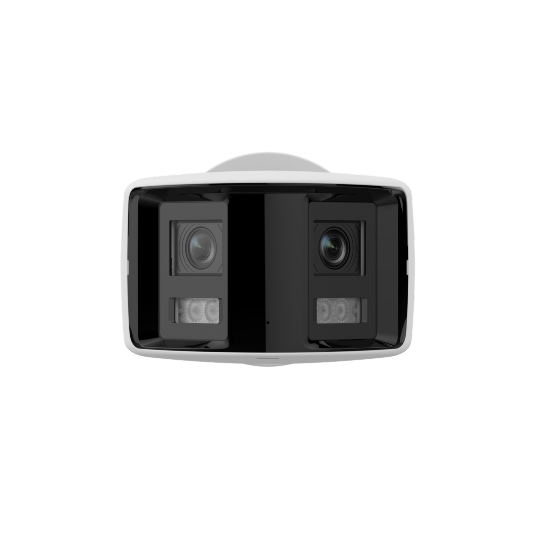 La fotocamera panoramica DS-2CD2387G2P-LSU/SL di Hikvision è dotata di 2 obiettivi da 4 MP che insieme forniscono un'immagine 4K a 180 gradi senza che i lati diano un'immagine distorta convessa.