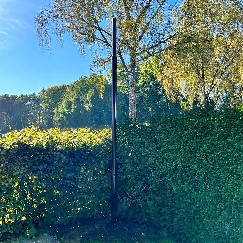 Nessuno. Si inserisce direttamente nel terreno, opzionalmente con blocchi di stabilizzazione. Il nostro consiglio: palo da 4,8 metri 0,8 metri nel terreno 4 metri dal suolo. Nella parte dell'albero sotto terra è presente un foro di passaggio per il cablaggio. Questo inizia a 50 cm dalla base dell'albero. È un foro ovale di 6 cm per 10 cm. |