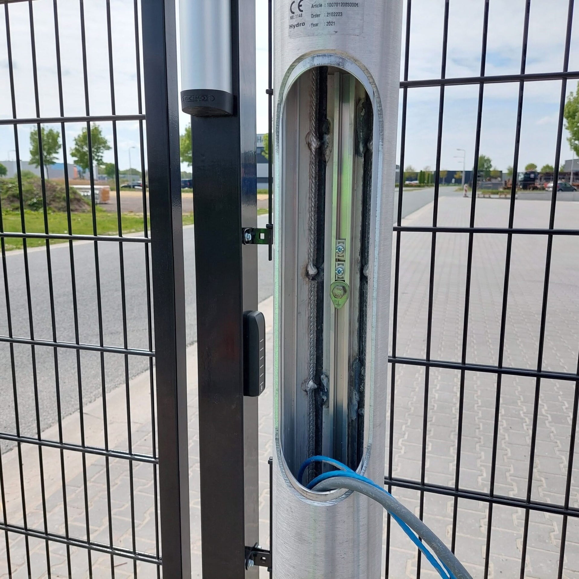 L'albero è cavo, quindi fai passare i cavi attraverso l'albero. Sulla parte superiore dell'albero è presente un tappo antiurto nero che chiude l'albero. È possibile praticare un foro nell'albero all'altezza desiderata attraverso il quale esce il cavo. Poiché ogni tipo di sistema di telecamere ha le proprie staffe di montaggio, non è presente alcun foro di serie.