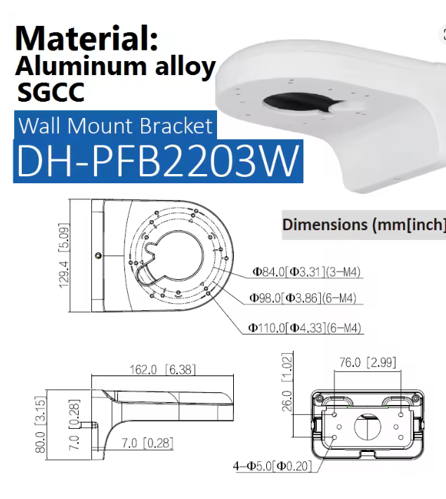 Dahua DH-PFB2203W Supporto da parete per varie fotocamere Dahua come IPC-HDB3849HP-AS-PV e IPC-HDW3449HP-AS-PV.