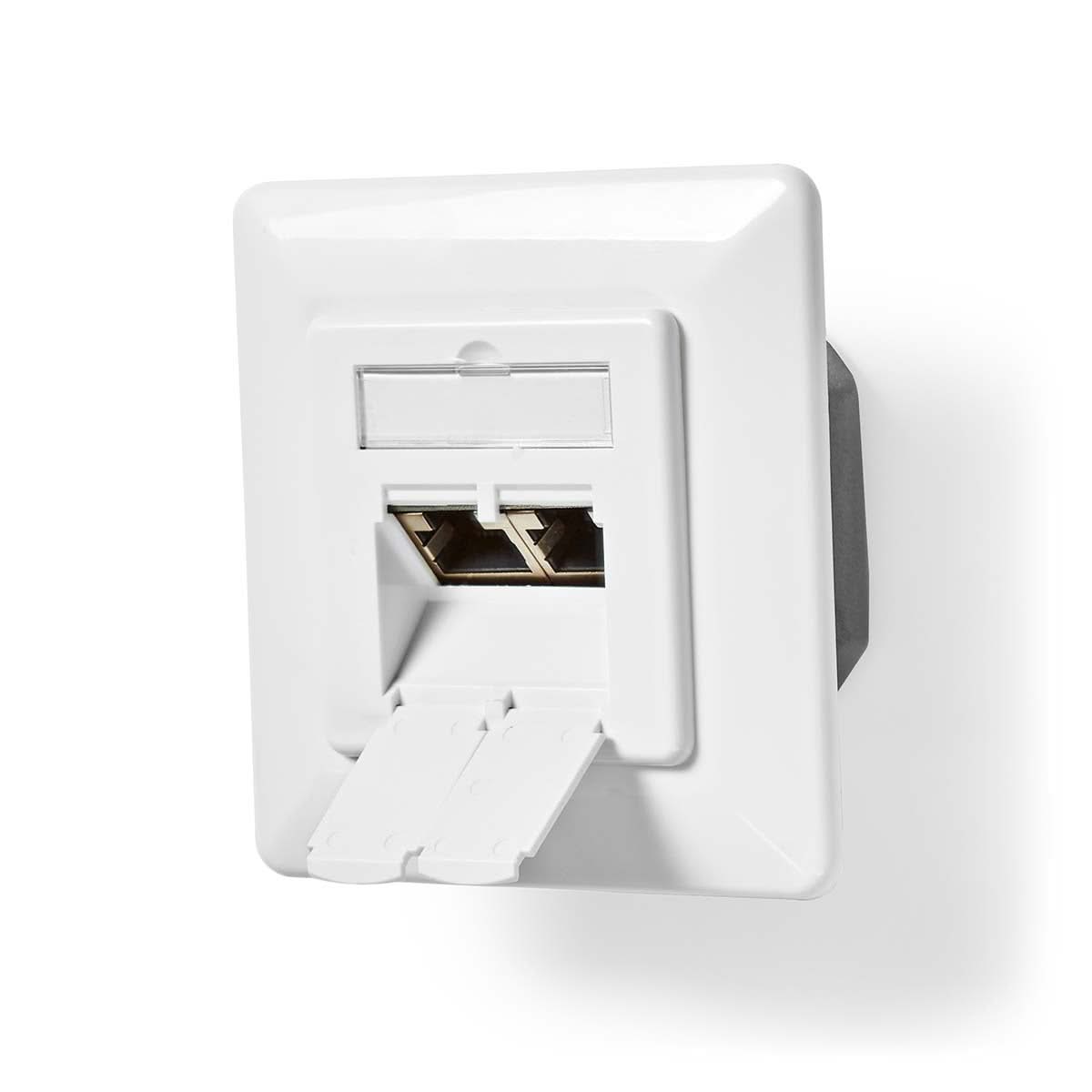 Caja de pared de red integrada, 2 puertos CAT6 Blanco