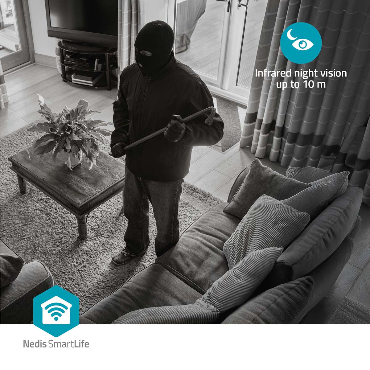 La cámara graba las imágenes en HD (1280x720 píxeles), lo que produce grabaciones completamente claras. Además, la cámara es igual de potente de noche, gracias a la visión nocturna con un alcance de 10 metros.