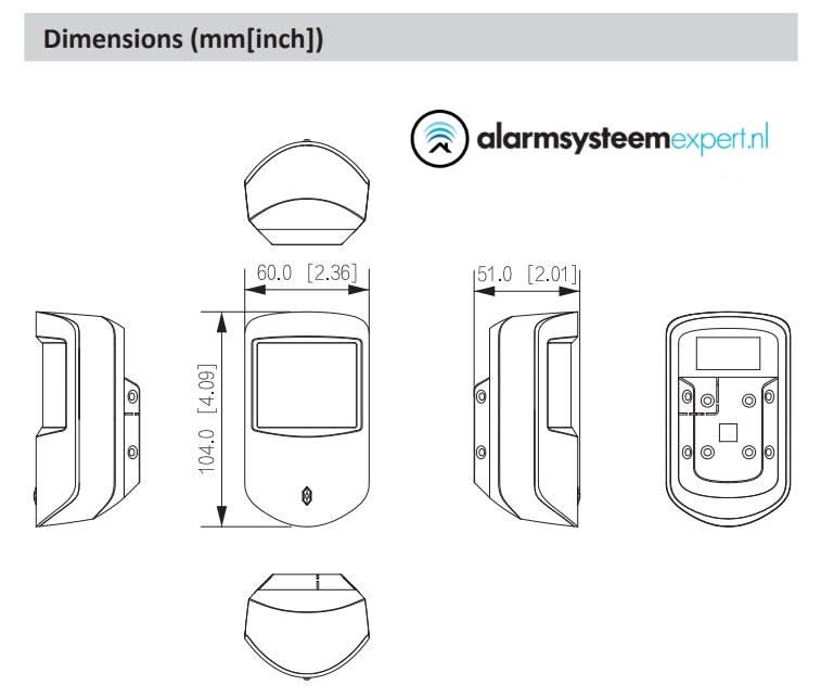 Además, el detector de movimiento es capaz de medir el nivel de temperatura con una precisión de ±1°C en el rango de -15°C a +65°C. Se comunica bidireccionalmente a distancias de hasta 1600 m en espacio abierto, utilizando la frecuencia inalámbrica de 868 MHz, con protección mediante cifrado AES128 y salto de frecuencia. La robusta carcasa, hecha de material PC + ABS de alta calidad, permite su uso a temperaturas entre -10°C y +55°C y está diseñada para aplicaciones en interiores. Está alimentado por una batería CR123A con una autonomía de hasta 4 años.