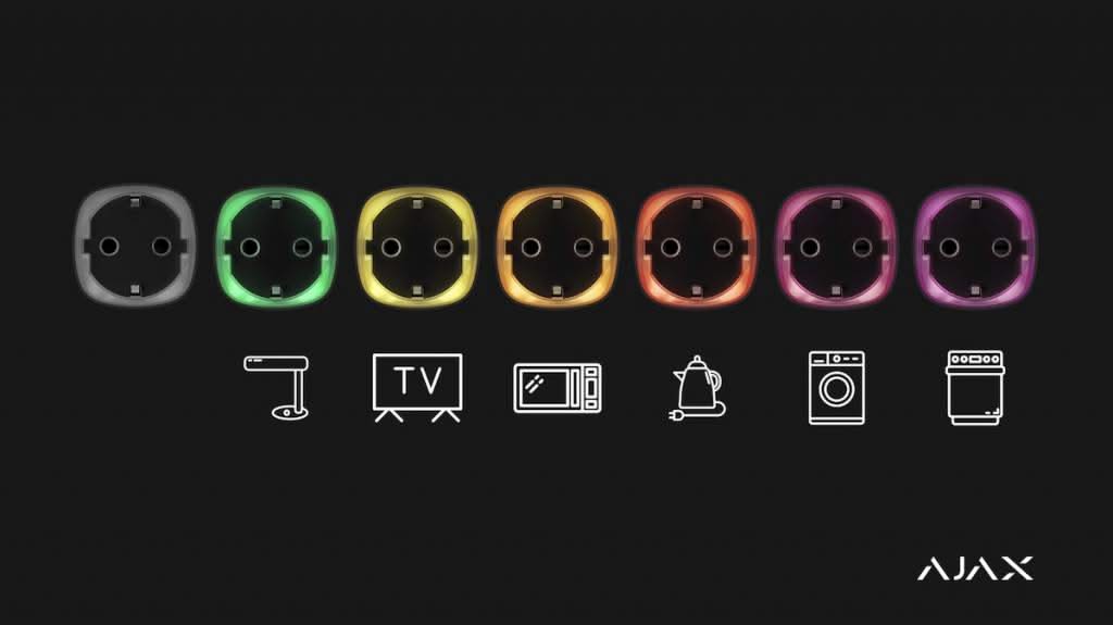 El Ajax Socket está equipado con un indicador LED que muestra la cantidad de energía consumida por el dispositivo. Cuanto más cerca del color violeta, mayor será la factura de la luz.