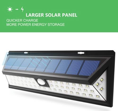 Esta lámpara solar LED para asustar con 54 LED es imprescindible si desea proteger mejor su hogar o negocio. ¡Proporciona mucha luz y funciona con una batería de litio que se carga automáticamente con energía solar! La lámpara Solar funciona en base a un sensor de movimiento para que no se desperdicie energía innecesariamente. Gracias a su diseño delgado y su amplio panel solar, también sigue siendo un producto fácil de usar. Debido a su ancho, también absorbe más luz solar, lo que significa que se carga más rápido.