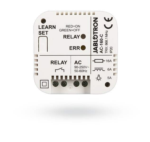 Relé de potencia multifuncional inalámbrico Jablotron AC-160-C, modelo integrado