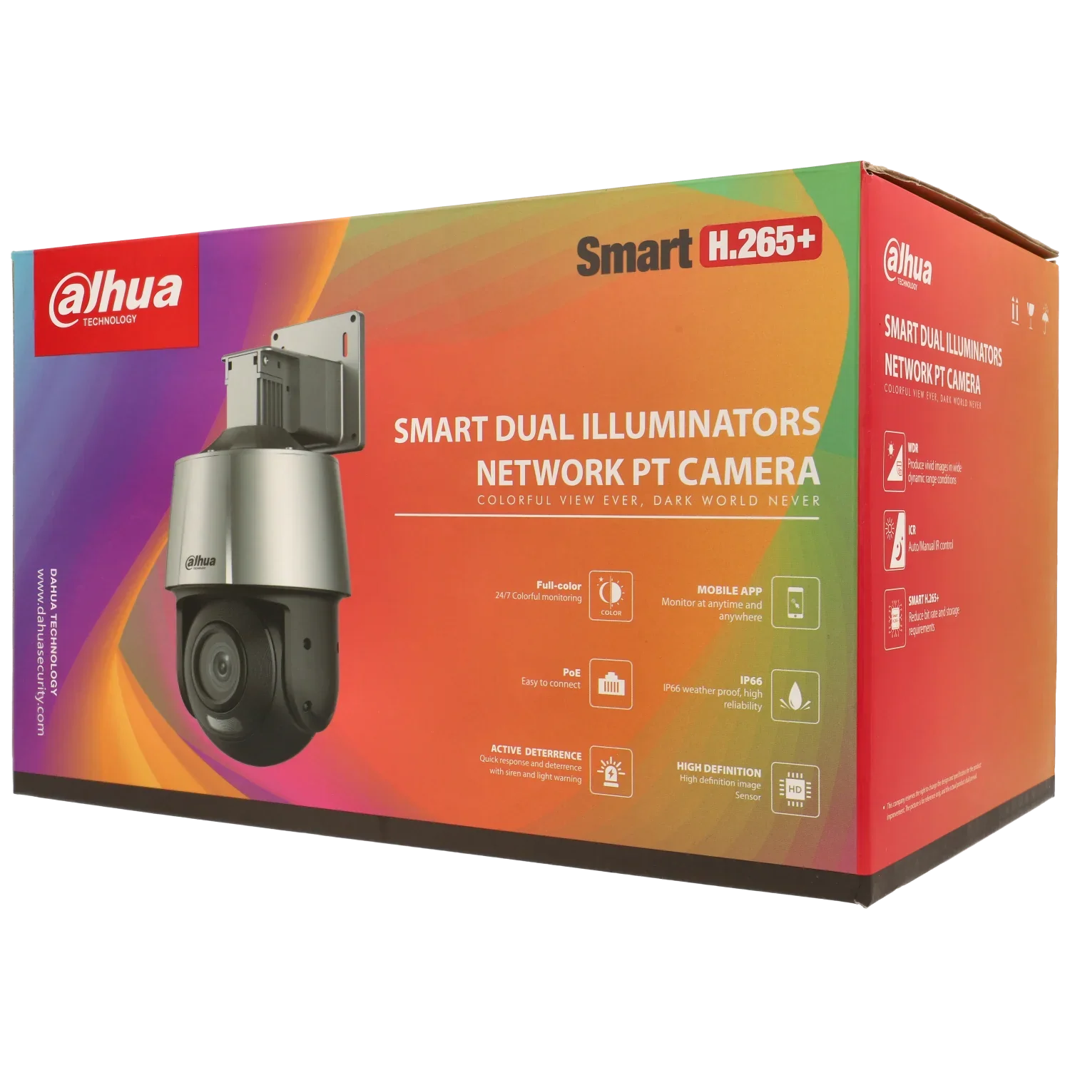 el Dahua SD3A400-GN-A-PV es una cámara de red PT (Pan-Tilt) versátil e inteligente de la serie Dahua Lite. Esta cámara robusta y compacta está diseñada para una vigilancia confiable en interiores y exteriores, con una resolución de 4 megapíxeles y una gama de funciones avanzadas que garantizan un rendimiento óptimo en una amplia gama de condiciones de iluminación. Con su disuasivo activo incorporado (sirena y flash), iluminación dual inteligente (IR y luz blanca) y análisis de video inteligente (IVS), esta es una excelente opción para quienes se toman la seguridad en serio.