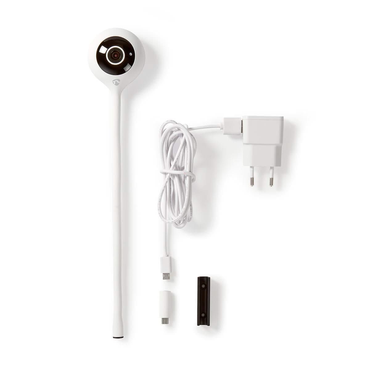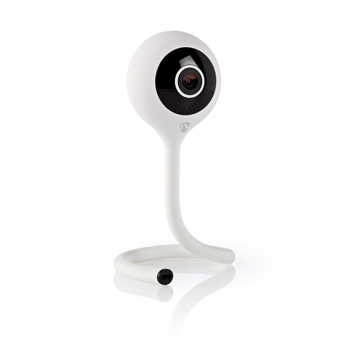 A câmera suporta um cartão microSD de até 128 GB (não incluído) para amplo armazenamento de imagens e seu design flexível e ajustável permite colocá-la em qualquer lugar da sala para gravar um ângulo de 110° graças ao sensor CMOS de 1/4”.