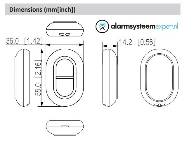 - Dimensões do produto - 55 mm × 36 mm × 14,2 mm (2,17" × 1,42" × 0,56") (C × L × A)